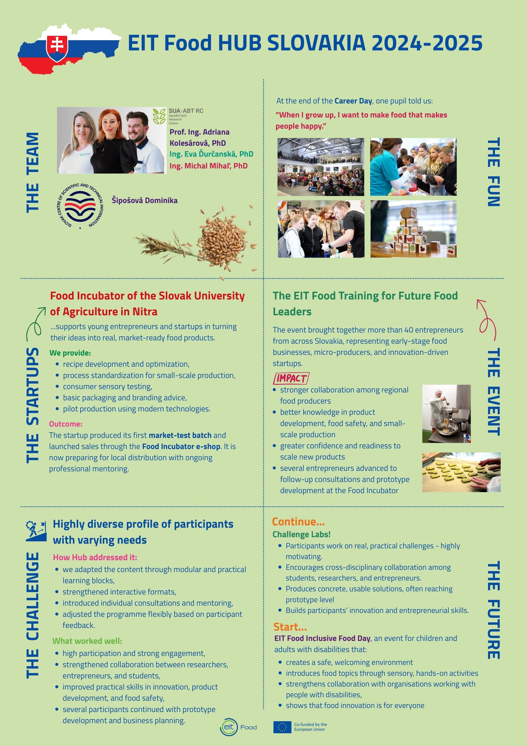 Rok 2025 bol pre EIT Food Hub na Slovensku, pôsobiaci na Slovenskej poľnohospodárskej univerzite v Nitre, v znamení rastu, spolupráce a prepájania výskumu s praxou. Dôležitým partnerom Hubu bolo aj Centrum vedecko-technických informácií SR, ktoré sa spolupodieľalo na aktivitách na podporu start-upov, šírení informácií a rozvoji inovácií v agropotravinárstve.
